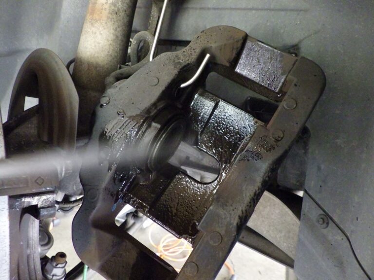 キャリパーシールからのフルード滲みを点検してハブ部分の錆取り防錆処理を行いホイールは、裏も表も洗います。