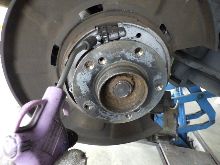 当店の車検整備では、リアブレーキローターは、取り外してブレーキシューまわりの洗浄と可動部分のグリスアップを行い
