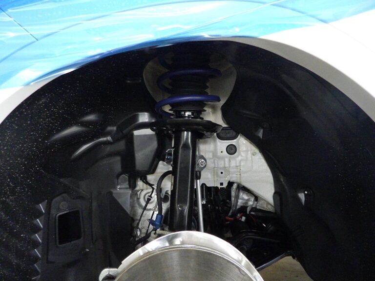 完成の写真を見るとしっかりと車高は、下がっております。これでお客様の駐車場にも入れますね!