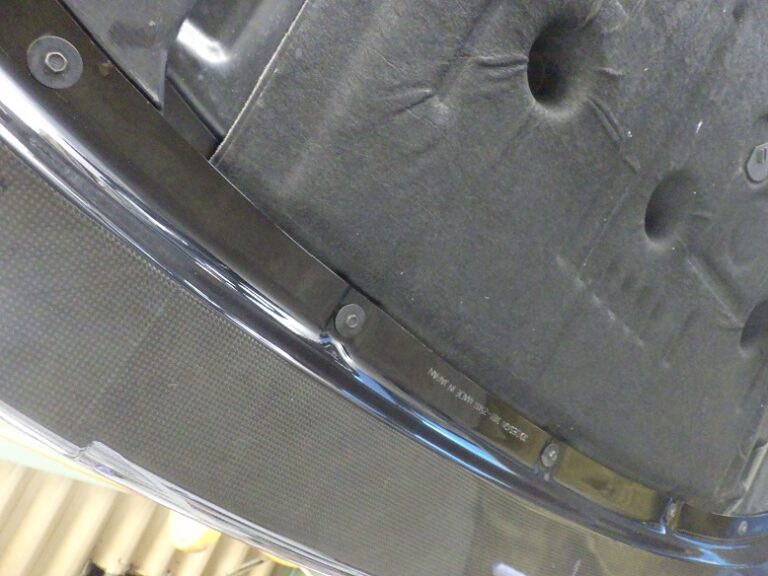 取り付け面を脱脂をして綺麗にしてからスポイラーを取り付けしております。取り付けたスポイラーに簡易的な