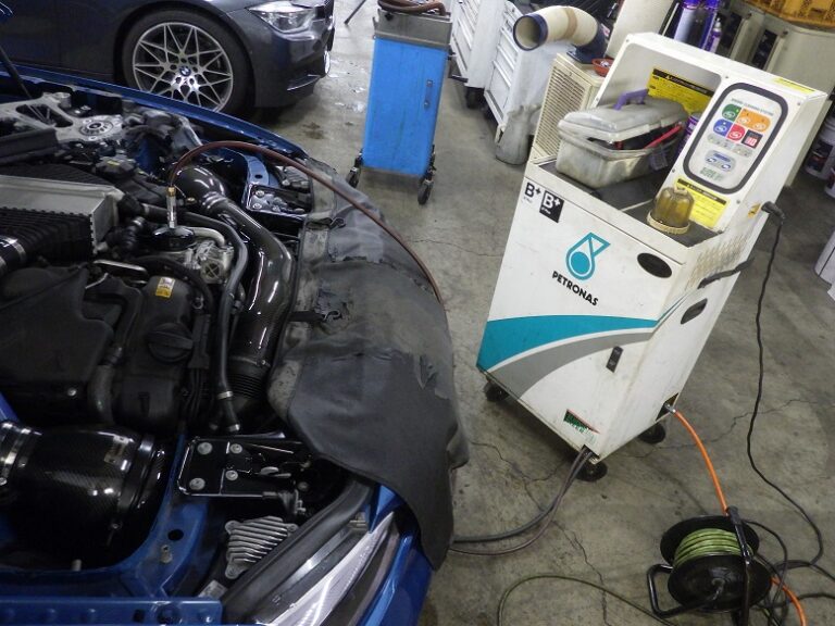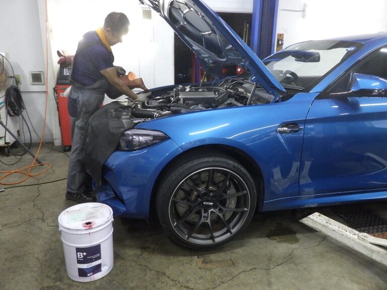 F87M2コンペのお客様のメンテナンス作業を行いました。こちらのお客様は、車検を他店で受けていたようで