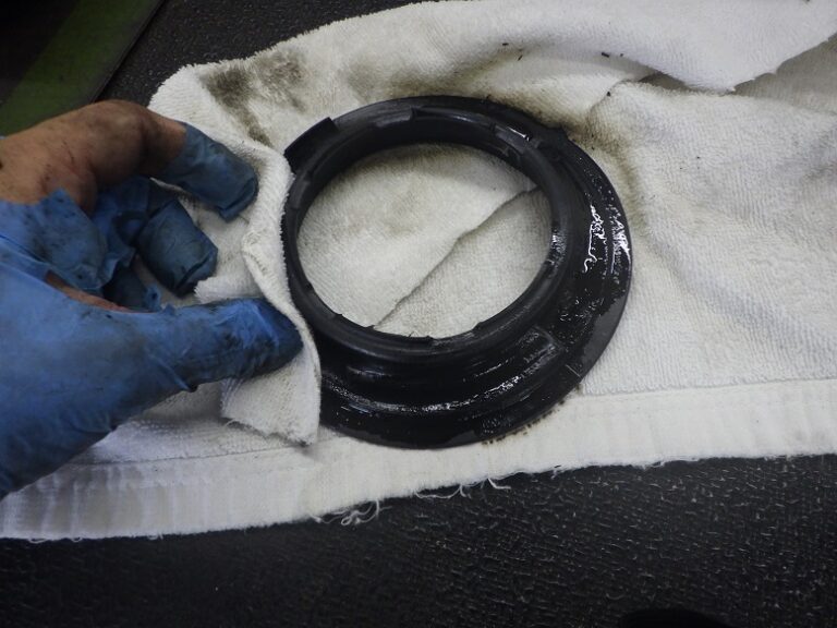 綺麗にしてから組み付けします。リアのスプリングの取り付け部分に砂利がたまるので綺麗に除去してから新品部品を