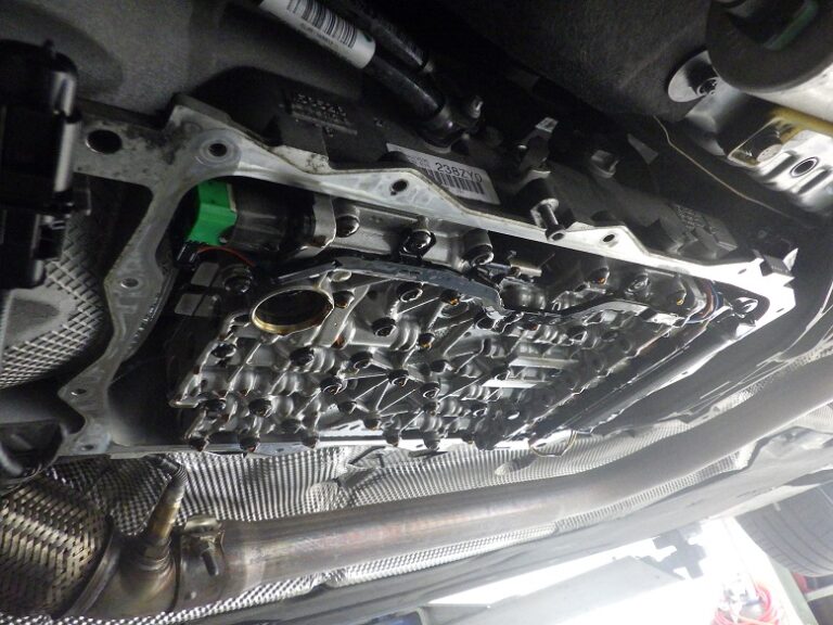 F31 320dのお客様のATF交換作業を行いました。F系車両のATは、フルードのフィルターがオイルパン内に