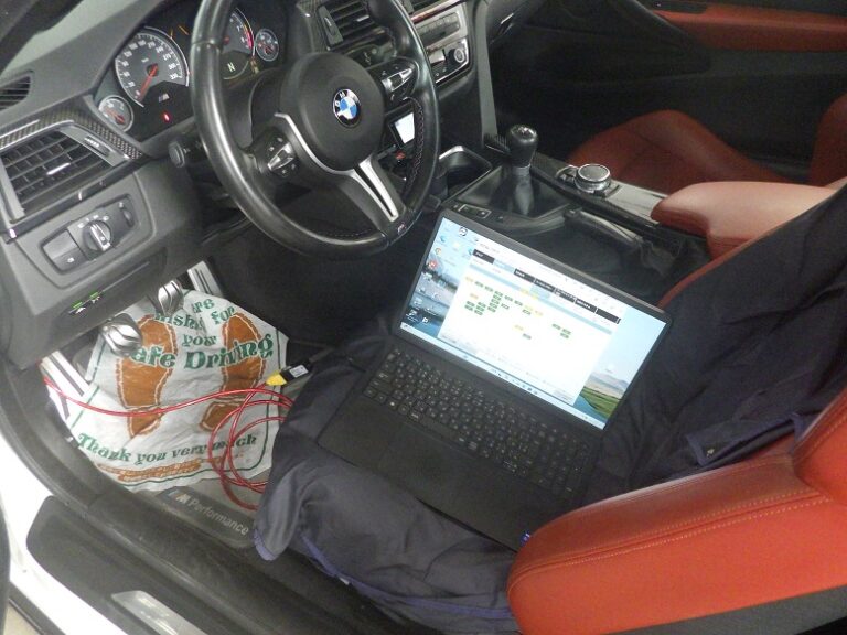 バッテリー診断を行い最後にBMW専用テスター使用にてコンピューター診断を行いエラーチェック、消去