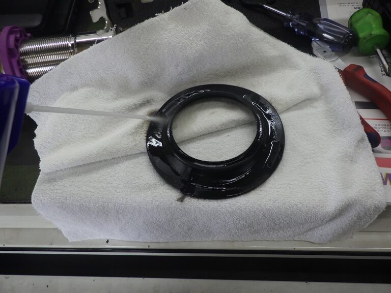 フロントのマウントのベアリング部分からグリスが滲み出てきていました・・・