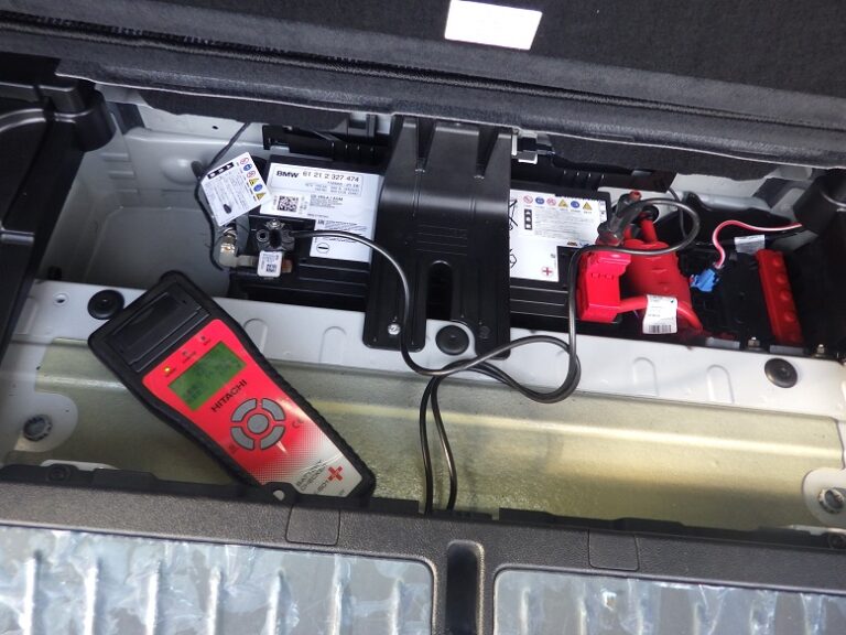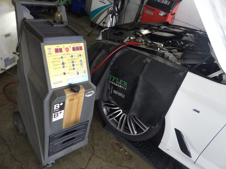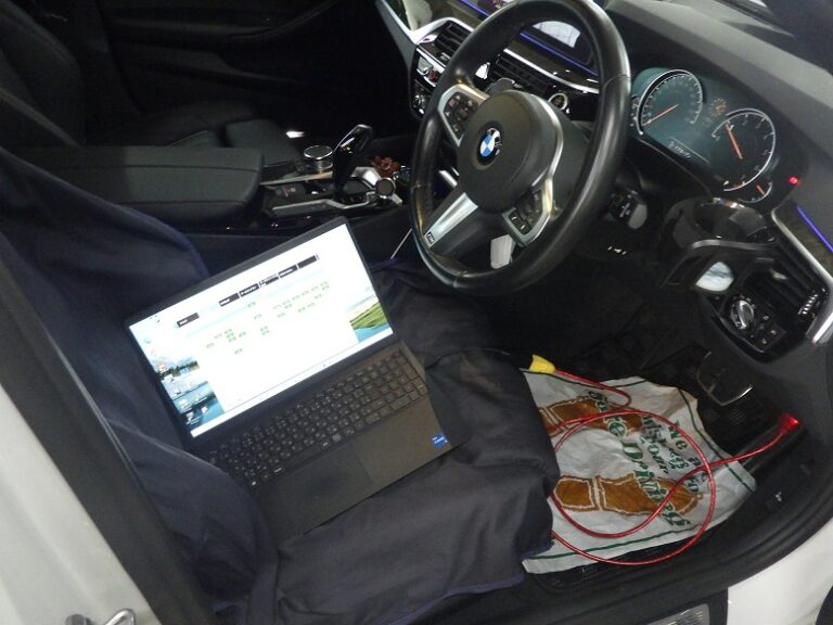 バッテリー診断を行い最後にBMW専用テスター使用にてコンピューター診断を行いエラーチェック、消去