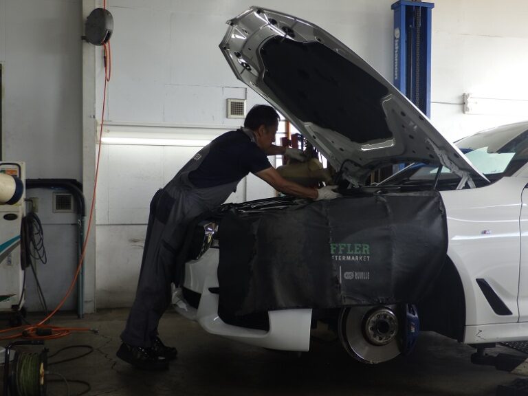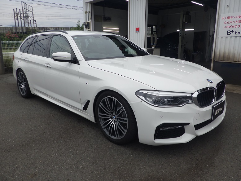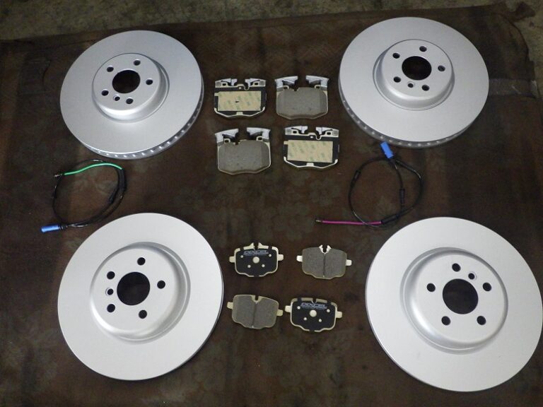 G31 530iのお客様の車検整備を作業しました。こちらのお車は、ブレーキディスク、パッドの残量が少な目で