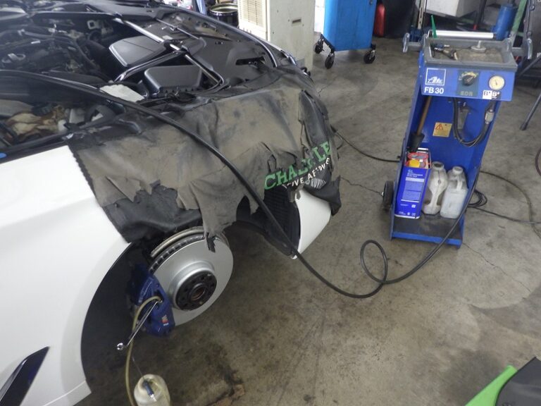 裏も表も洗います。同時に車検毎に交換をお勧めしておりますブレーキフルード、クーラント交換を純正同等品を使用して