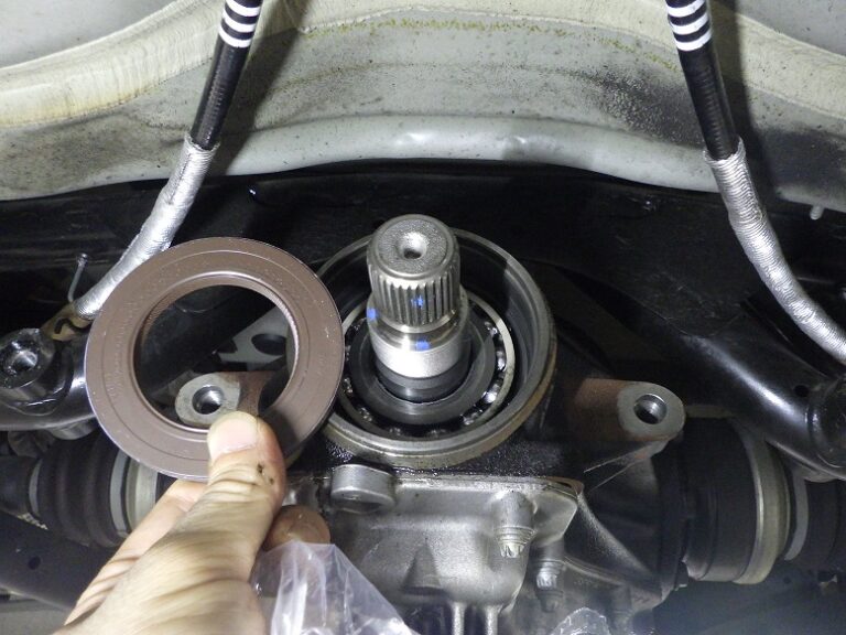 インプットシャフトシール交換の際は、デフ降ろし無しで交換出来ますがプロペラシャフトやマフラー、遮熱版と