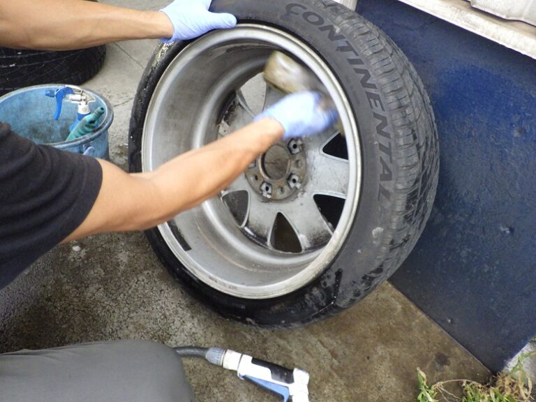 キャリパーシールからのフルード滲みを点検してハブ部分の錆取り防錆処理を行いホイールは、裏も表も洗います。