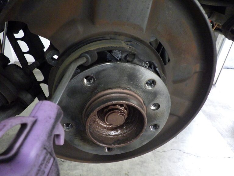 当店の車検整備では、リアブレーキローターは、取り外してブレーキシューまわりの洗浄と可動部分のグリスアップを行い