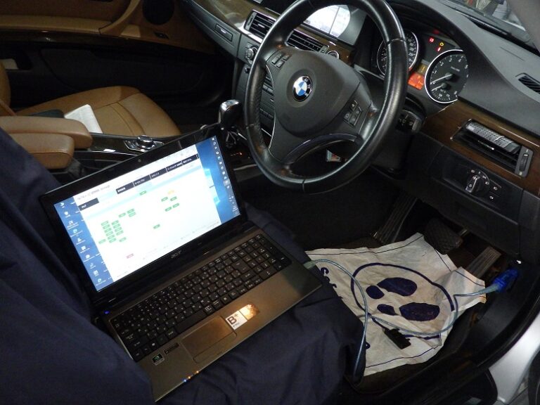 バッテリー診断を行いBMW専用テスター使用にてコンピューター診断を行いエラーチェック、消去、
