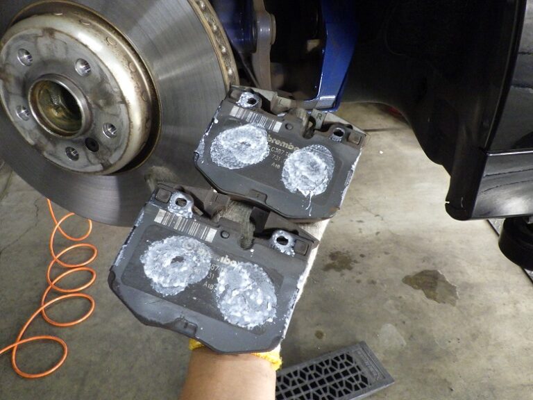 からのフルード滲みを点検してブレーキパッドは、前後とも取り外して表面の洗浄及びグリスアップを行い取り付け