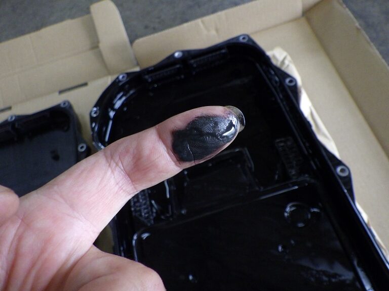 オイルパンごとの交換となります。外したオイルパン内の磁石には、真っ黒な鉄粉が付いていました・・・