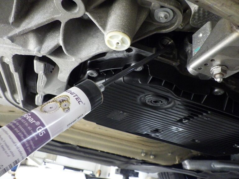 ATFを入れる前にレビテックG5を注入しました。当店でATF交換の際に使用するフルードは、