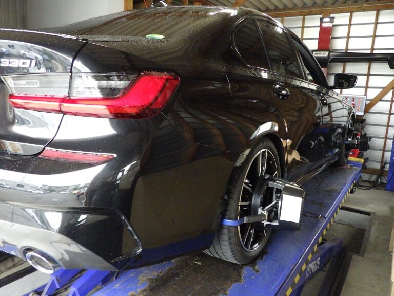 先日、当店で3Dデザイン車高調を取り付けしましたG20 330iのお客様の車検整備を作業しました。