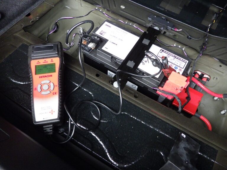 バッテリー診断を行いBMW専用テスター使用にてコンピューター診断を行いエラーチェック、消去、