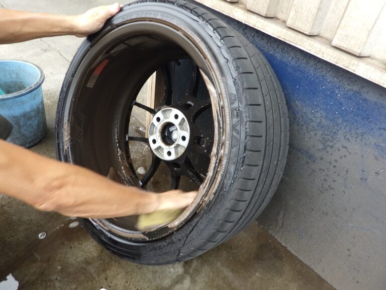 ハブ部分の錆取り防錆処理を行いホイールは、裏も表も綺麗に洗います。