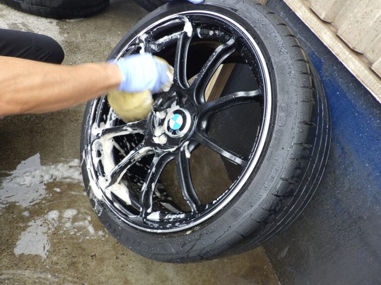 キャリパーシールからのフルード滲みを点検してハブ部分の錆取り防錆処理を行いホイールは、裏も表も洗います。