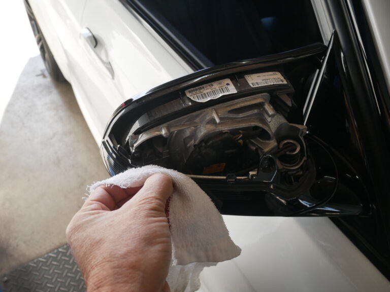 同時に3Dデザイン製ミラーカバーも取り付けしました。こちらのカーボン製品なので取り付け前に板金工場で