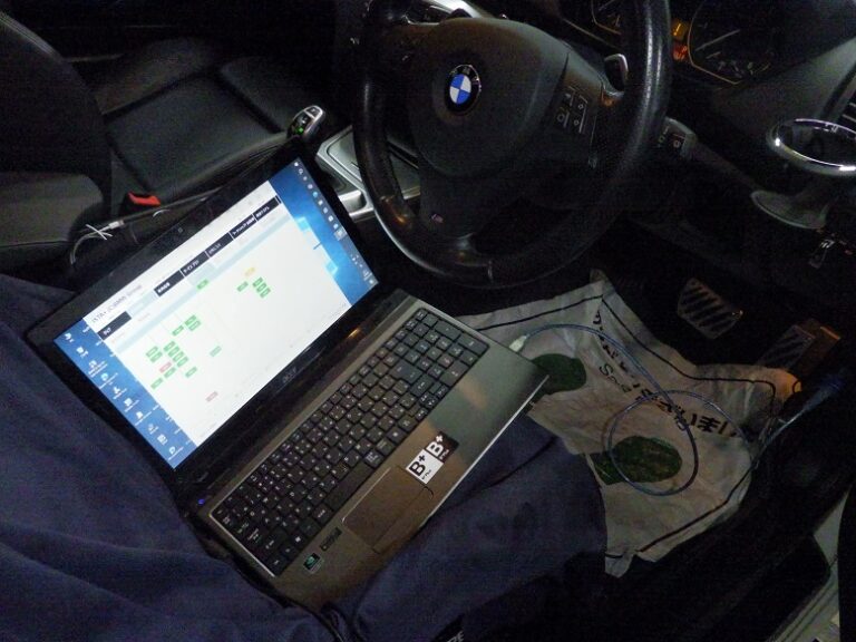 バッテリー診断を行いましてBMW専用テスター使用にてコンピューター診断を行いエラーチェック、消去、