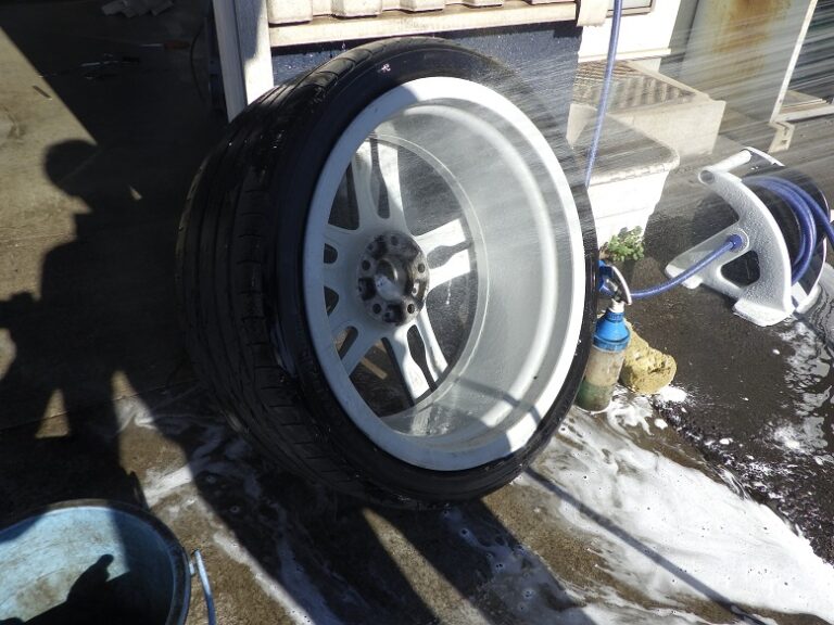 ハブ部分の錆取り、防錆処理を行いホイールは、裏も表も洗います。