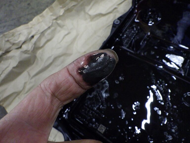 凄い汚れと鉄粉でした。当店で交換の際に使用しているATFは、ビープラスオリジナルルブロス製ATFにて