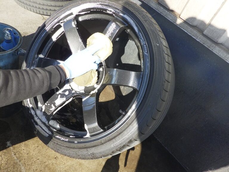 ハブ部分の錆取り、防錆処理を行いホイールは、裏も表も洗います。