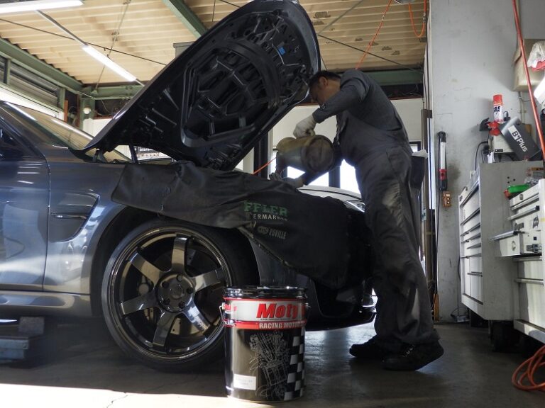 ビープラスオリジナルモティーズ製オイルターボ0W-40にてオイル交換を作業しました。12カ月点検キャンペーンも
