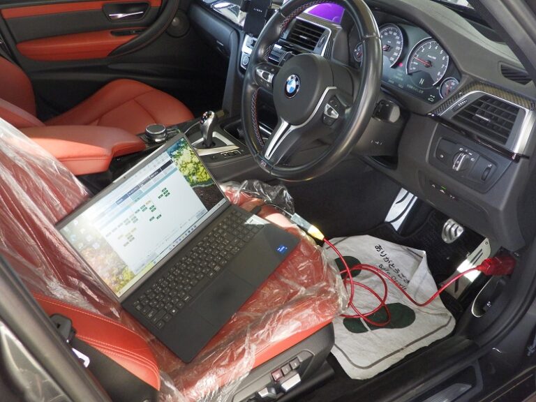 最後にBMW専用テスター使用にてコンピューター診断を行いエラーチェック、消去、サービスインターバルリセットを