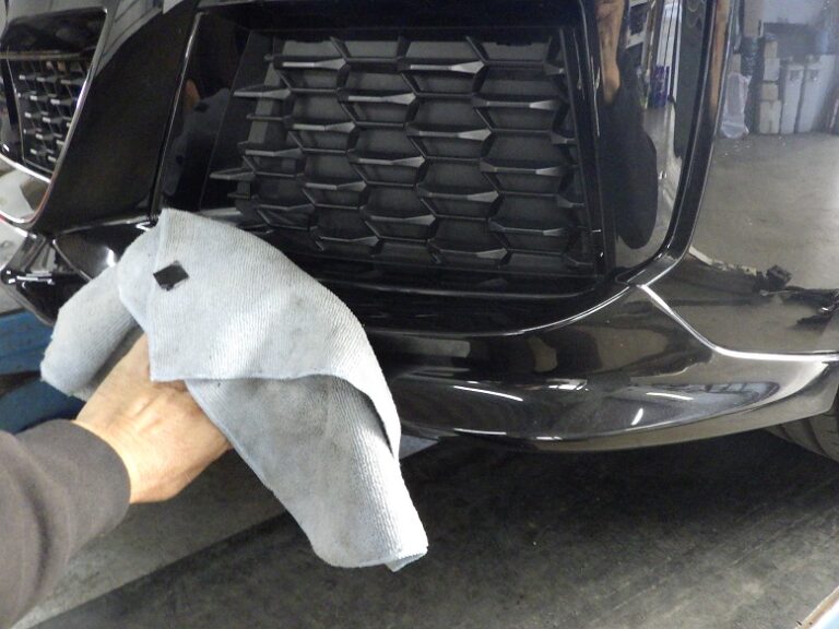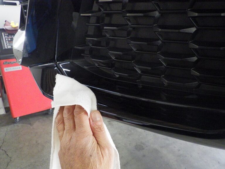 取り付け時には、現車で仮合わせを行い取り付け位置決めをしてからボディ側をしっかりと脱脂して両面テープとバンパー