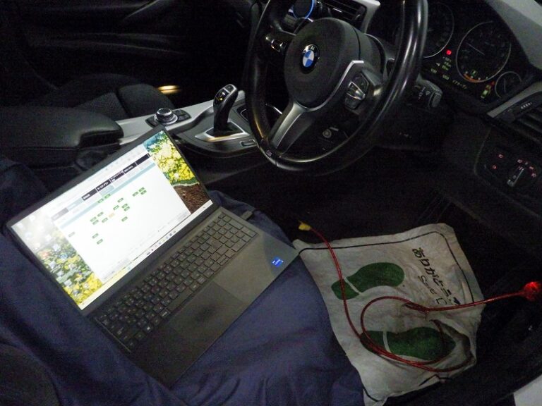 最後にBMW専用テスター使用にてコンピューター診断を行いエラーチェック、消去、サービスインターバル