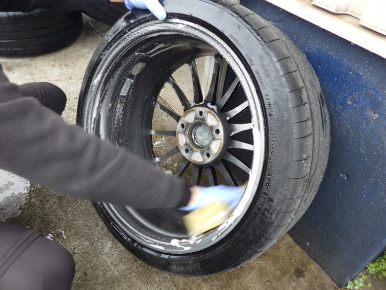 行いキャリパーまわりの洗浄とシールからのフルード滲みの点検、ハブ部分の錆取り防錆処理を行いホイールは、