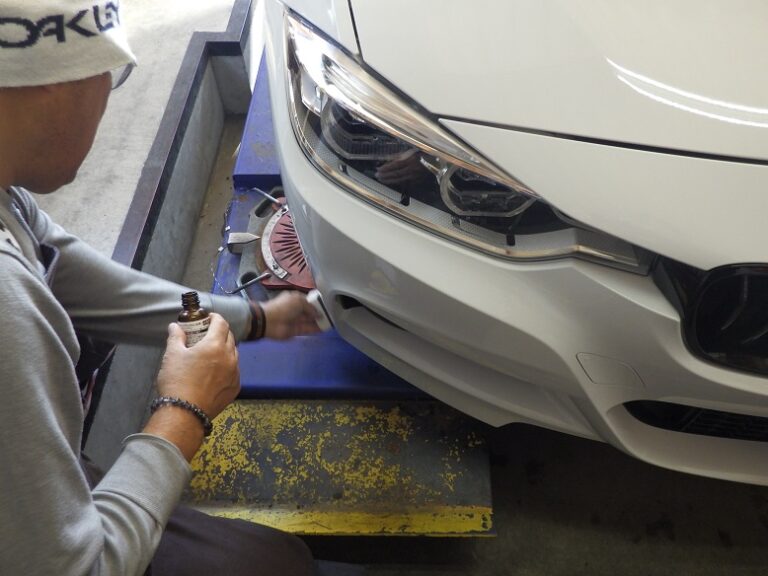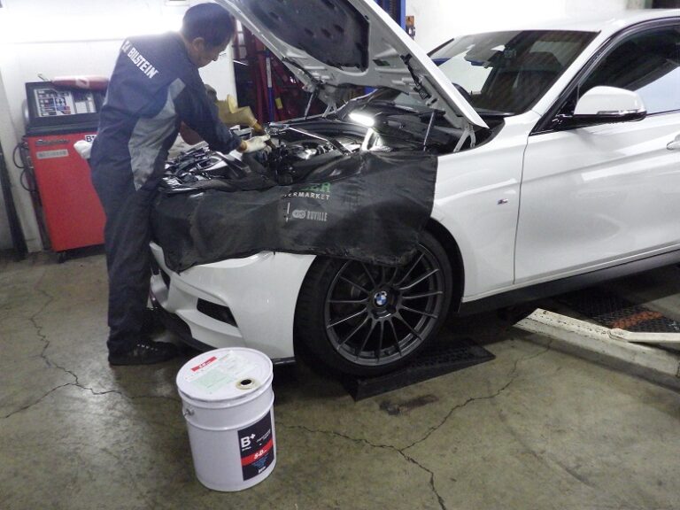 F30 320dのお客様の車検整備と車両保険使用にての保険修理を作業しました。