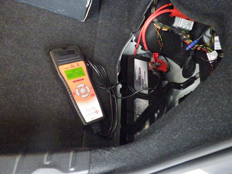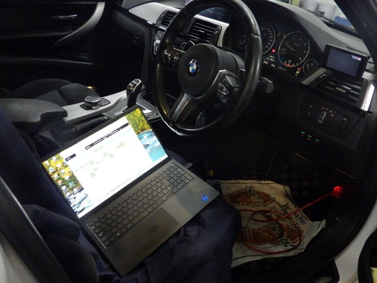 バッテリー診断を行いましてBMW専用テスター使用にてコンピューター診断を行いエラーチェック、消去、