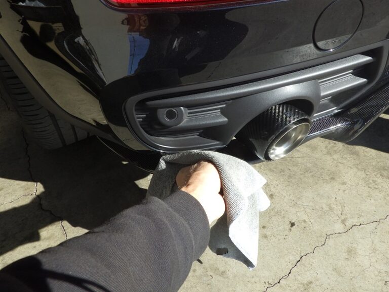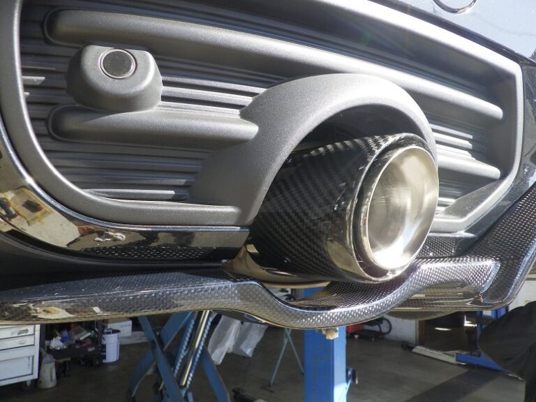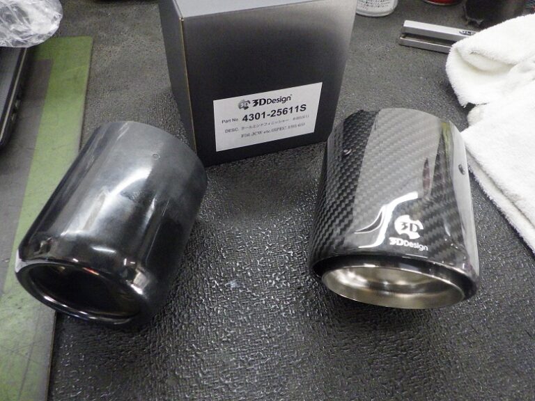 そしてマフラーカッターの取り付けを作業しました。フロントリップとサイドスカートは、以前に当店で
