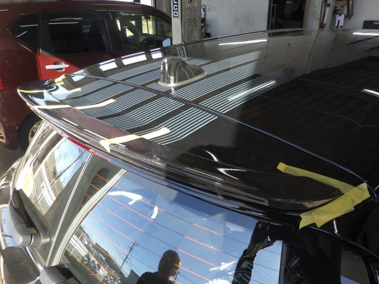 リアディフューザーとルーフスポイラーは、カーボン製品となります。どちらも取り付けの際には、