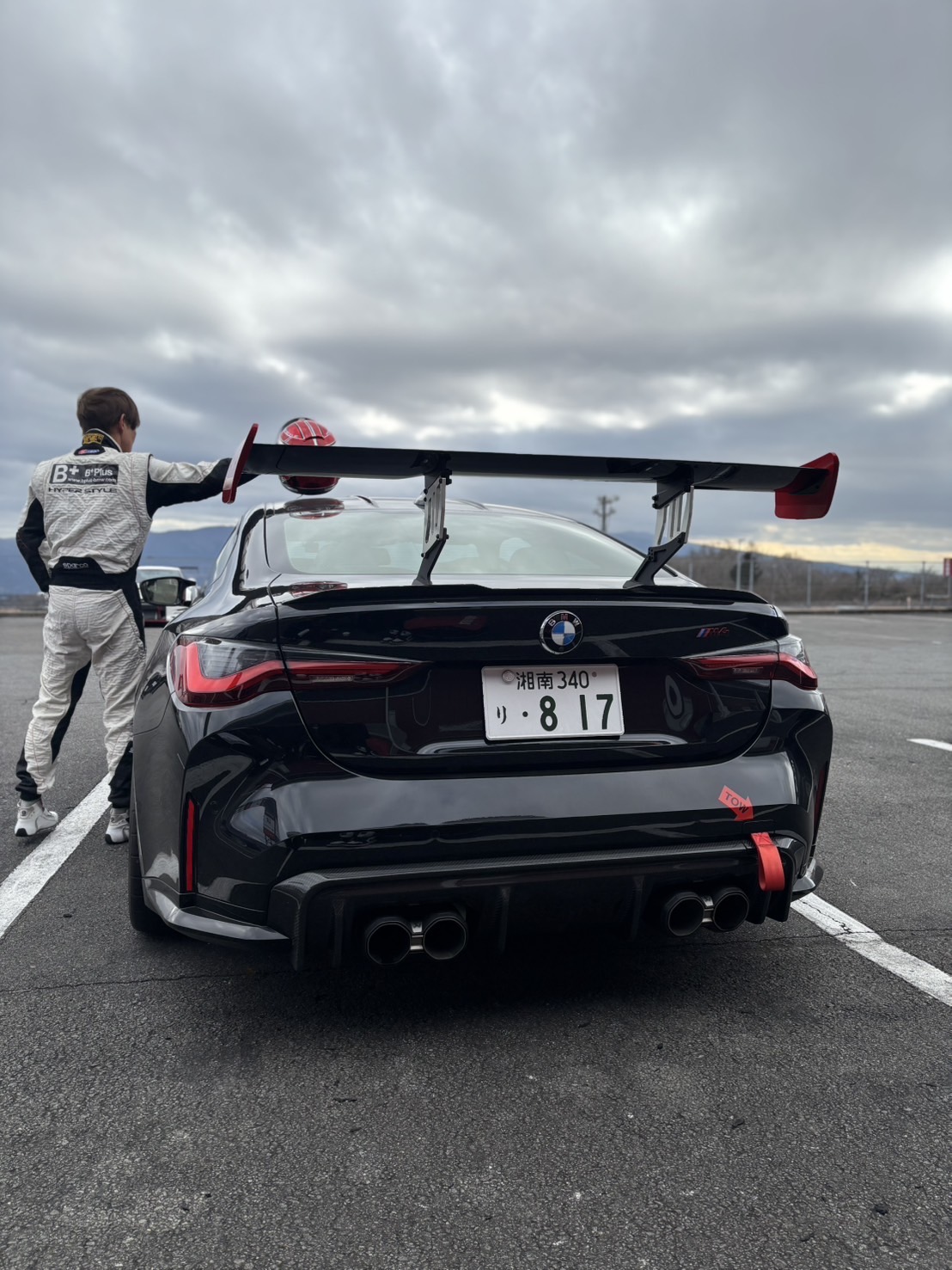 隣には、当店のお客様のG82M4のお客様もいまして一緒にS4走行枠に参加です。現地では、知り合いのお客様の