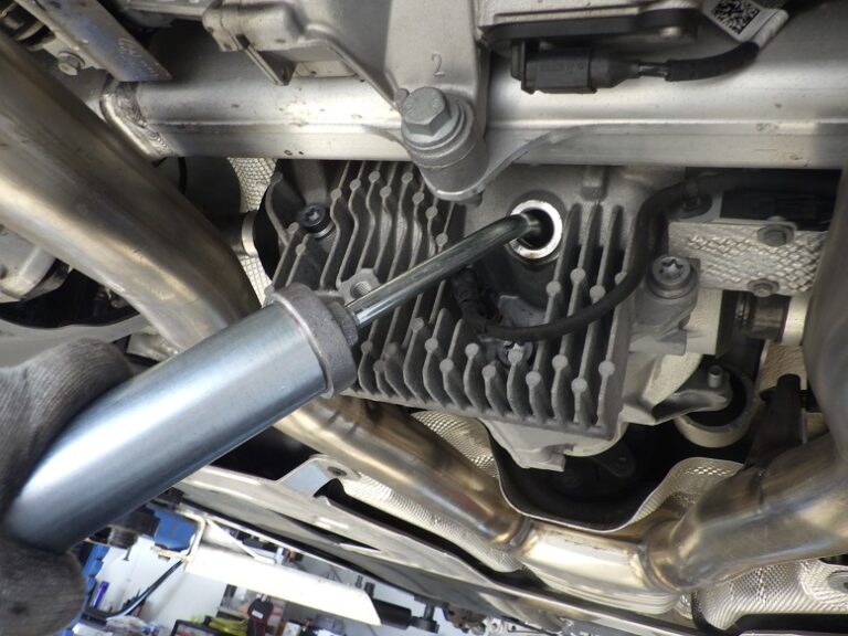 当店オリジナルルブロス製デフオイルを使用して交換を行いました。こちらも2万キロ毎の交換を