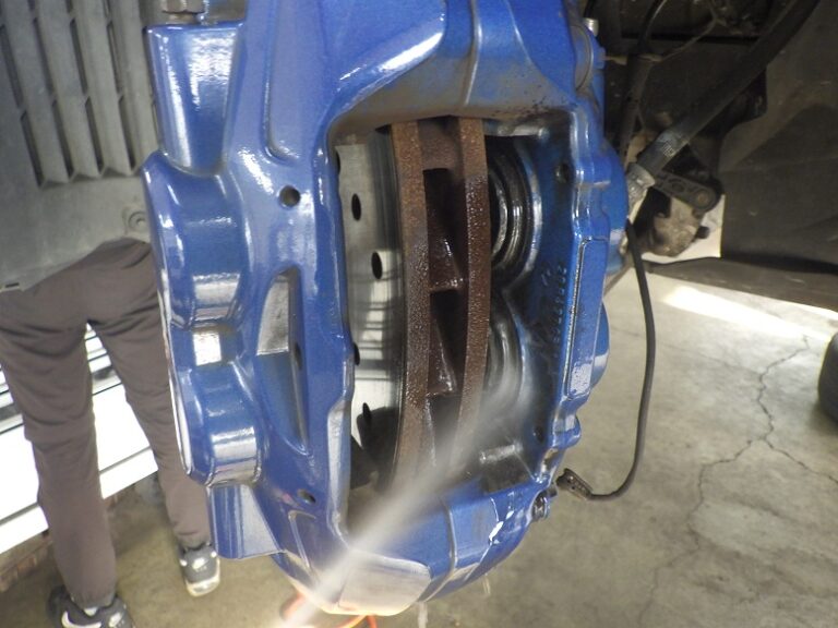 当店の車検整備においては、リアブレーキローターは、取り外してサイドブレーキシューまわりの洗浄と