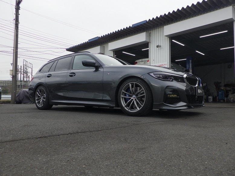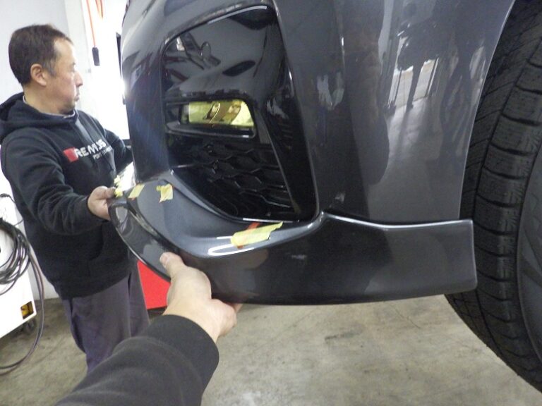 G21 318iのお客様に3Dデザイン製フロントリップスポイラーの取り付けを作業しました。