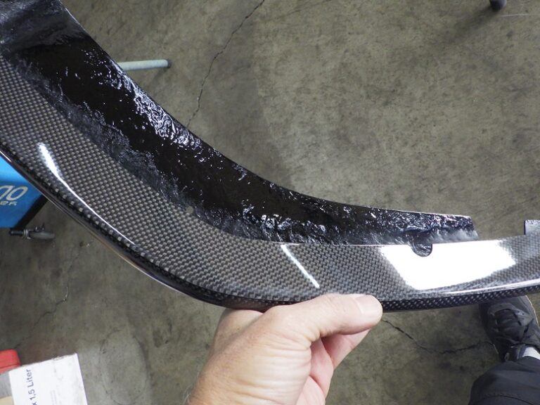 カーボン製品にクリア塗装を行うと紫外線によるカーボンの変色が防げます。そして より艶が増します。