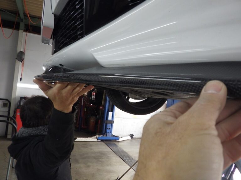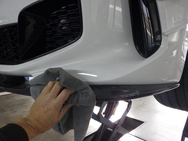 F44M135iのお客様に3Dデザイン製フロントリップスポイラーカーボンの取り付けを作業しました。