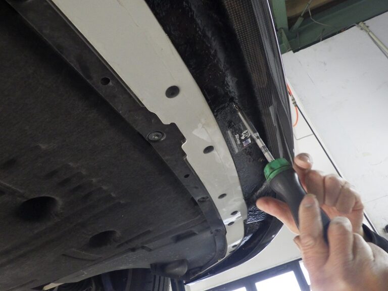 取り付け面をしっかり脱脂を行い両面テープとバンパー底面に穴あけをしてビス止めで取り付けします。