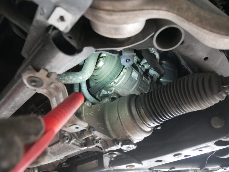 デフオイルの滲みや漏れの点検を行い脚まわりのブッシュの状態を点検してクーラントの漏れや滲み、ホースからの