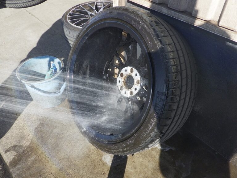 ハブ部分の錆取り、防錆処理を行いホイールは、裏も表も洗います。