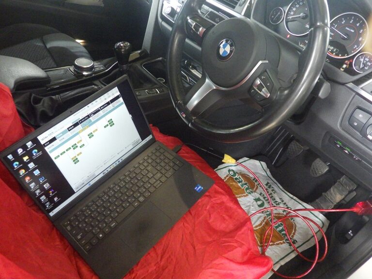 バッテリー診断を行いBMW専用テスターを車両に接続してコンピューター診断を行い