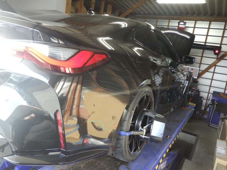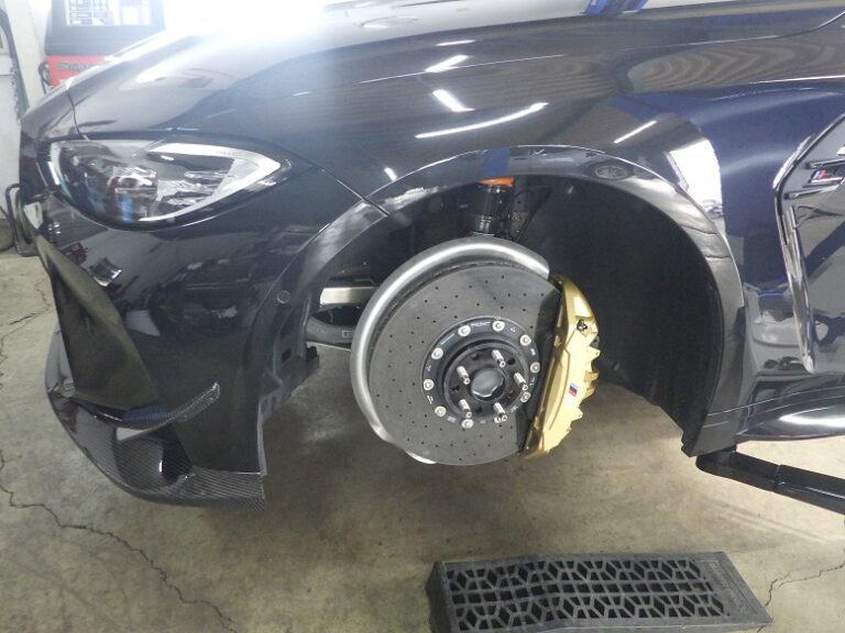 FSWでサーキット走行を楽しまれておりますG82M4のお客様のタイヤ交換作業で