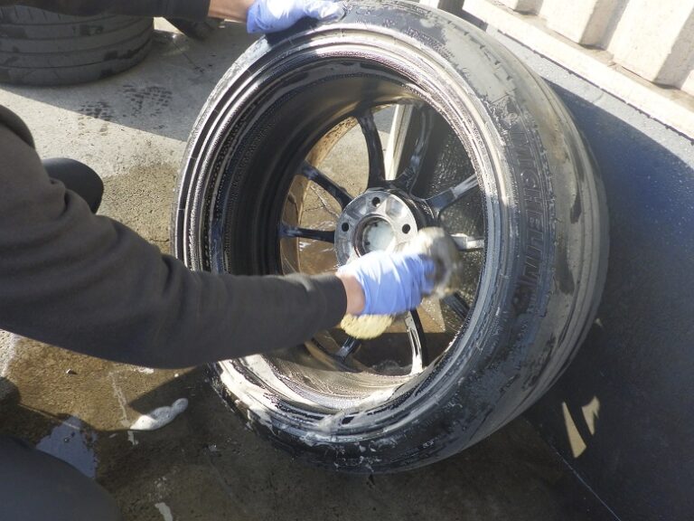 行いキャリパーまわりの洗浄とシールからのフルード滲みの点検、ハブ部分の錆取り防錆処理を行いホイールは、