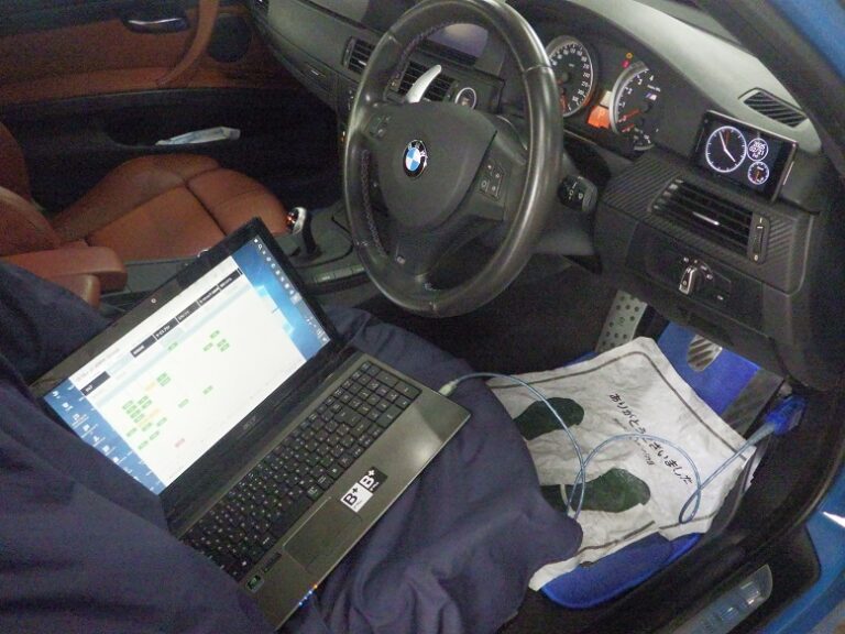 バッテリー診断を行いBMW専用テスターを車両に接続してコンピューター診断を行い